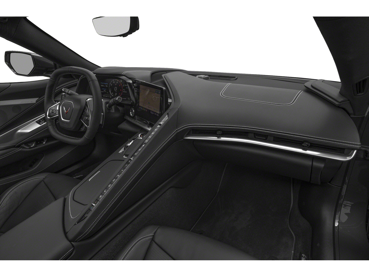 As you take the wheel, you'll be surrounded by the luxurious Mulan Leather Seating Surfaces with Perforated Inserts, complemented by the sporty and stylish Leather-Wrapped Steering Wheel and Shift Knob. The intuitive and responsive controls, combined with the Corvette's agile handling, will make every drive an unforgettable thrill.