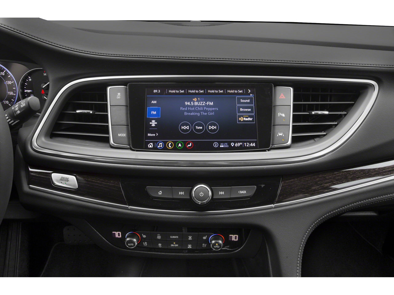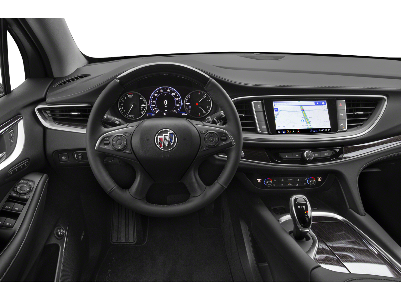 The Enclave Avenir's exceptional attention to detail is evident in its sleek, gray exterior and the premium 20-inch aluminum wheels with a stunning Pearl Nickel finish. Step inside and you'll be greeted by a meticulously crafted cabin, featuring perforated leather-appointed seating, heated and ventilated front seats, and a Bose Performance-Enhanced 10-speaker audio system.